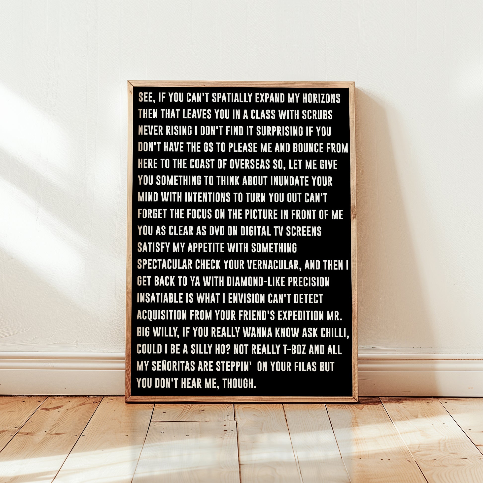 Colourful words for walls. Every print is made with a passion for lyrics and colour. Perfect for the bedroom, office, living room or to send as a gift to your fellow die hard TLC pals!